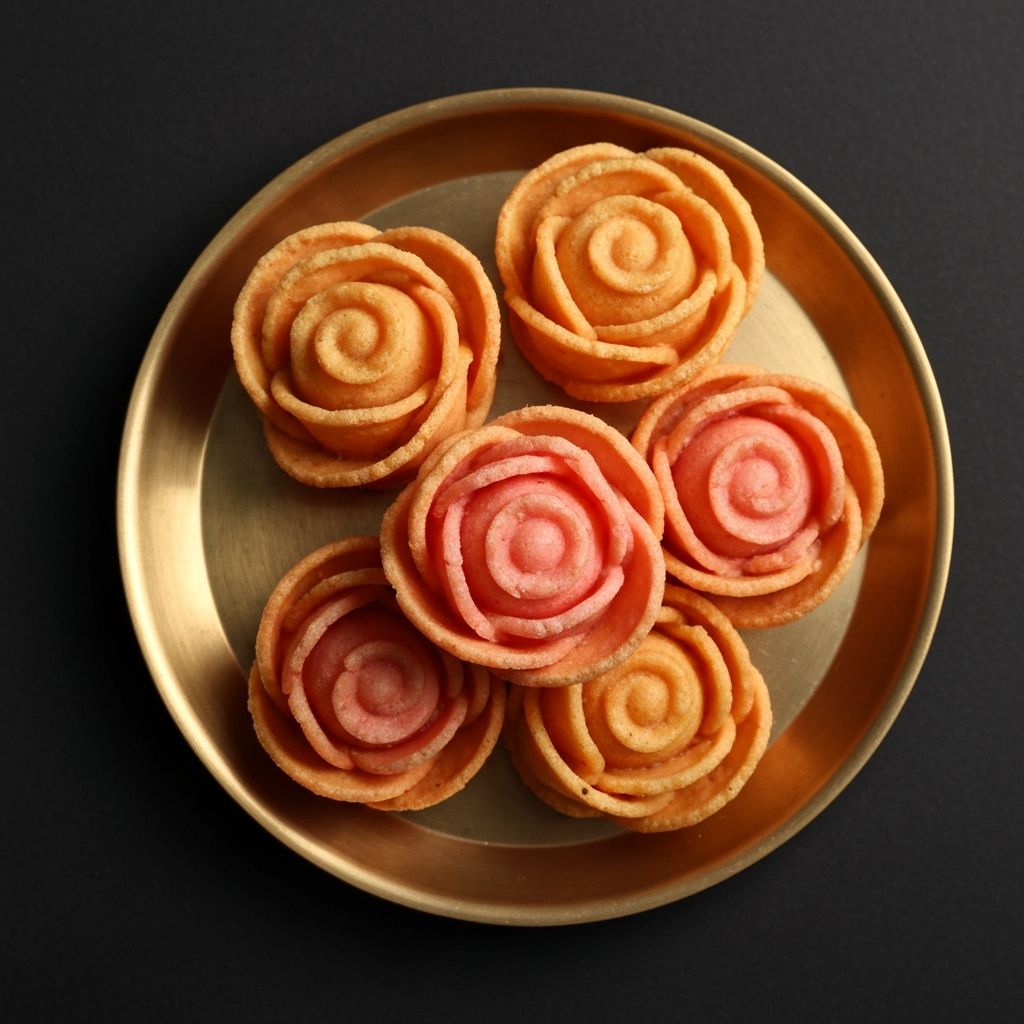 Rose-shaped crispy sweets made with rice flour and sugar syrup.