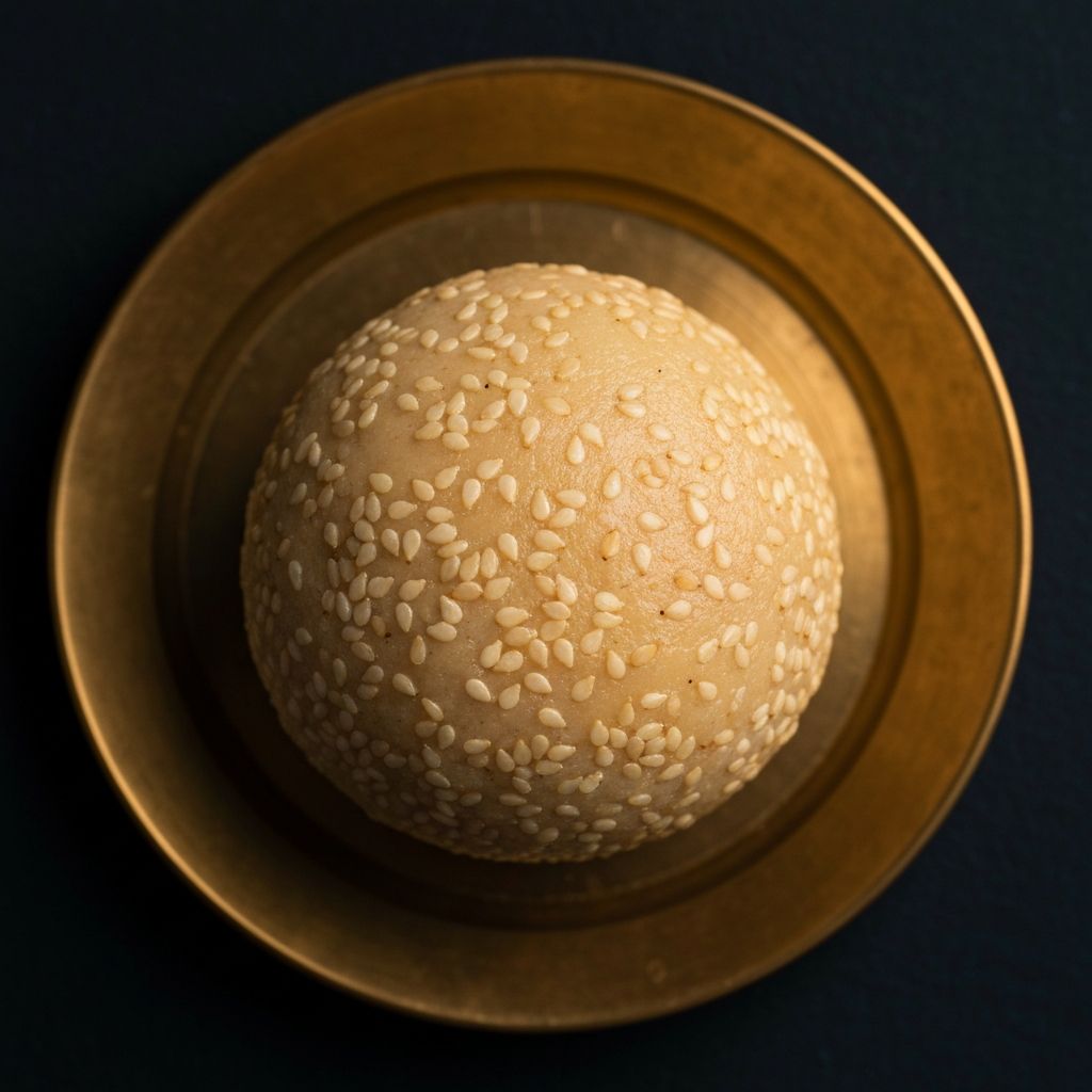 Nutty Nuvvula (Sesame) Laddu made with roasted white sesame seeds and jaggery.
